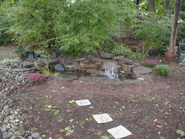 The landscaping surrounding the pond will soon be done by homeowner.